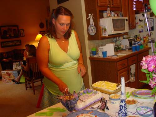 Beth (and Emily) cutting the cake.
