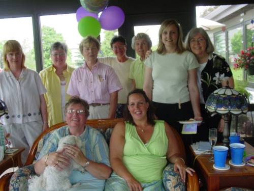 Nearly the whole gang. Missing are Kathy, who is taking the photo, and Barb, who is off preparing more food for everyone.